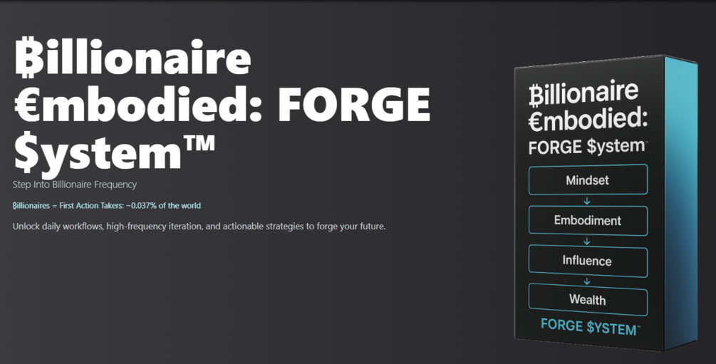 The ₿illionaire €mbodied: FORGE $ystem™ is a proven framework that turns ambitious action-takers into future billionaires by aligning mindset, daily momentum, and influence into one powerful process. It’s not theory, it’s embodiment. Your first €250 step to exponential wealth, clarity, and unstoppable growth.